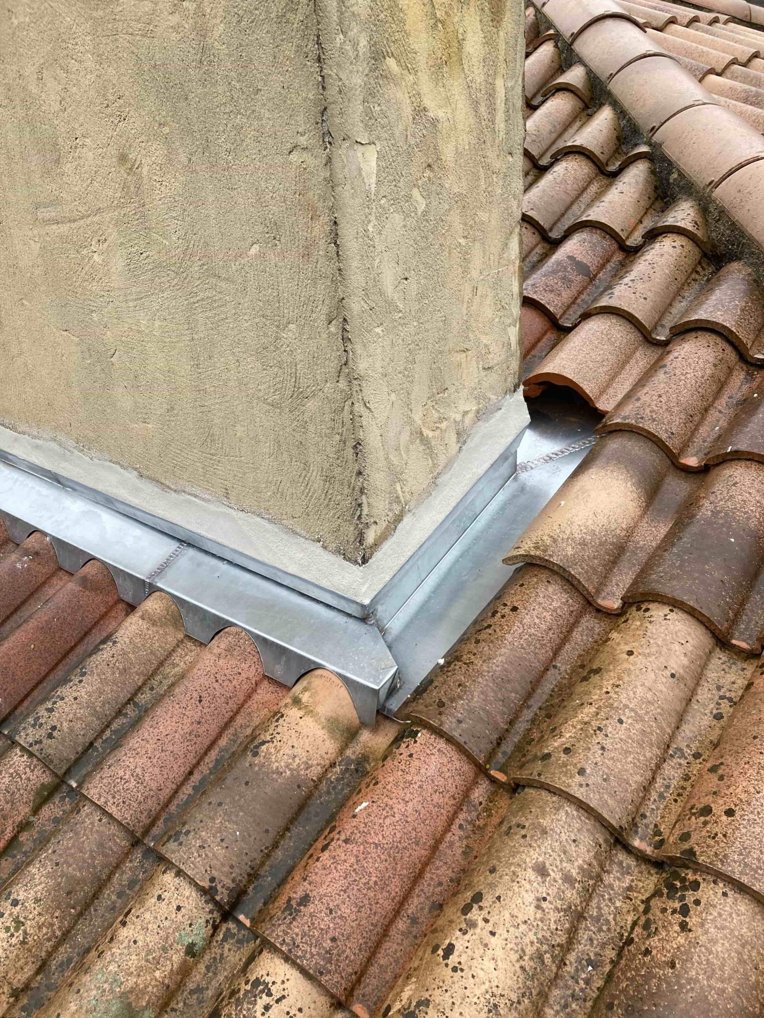 Nos équipes ont été appelées à Pessac pour un chantier de rénovation sur une toiture en tuiles. L’entourage de cheminée en place était très usé et présentait des fissures visibles, ce qui compromettait l’étanchéité globale du toit.