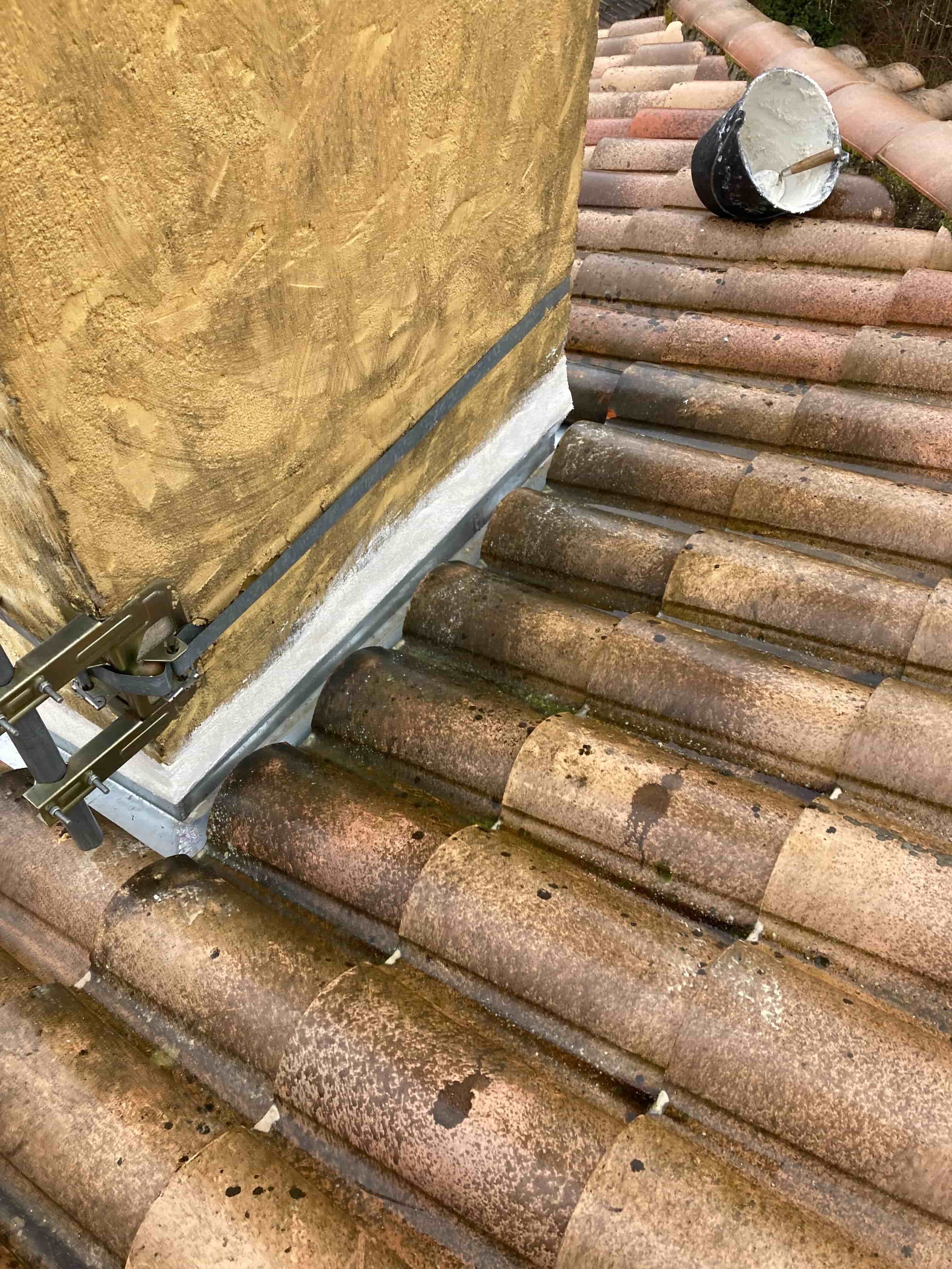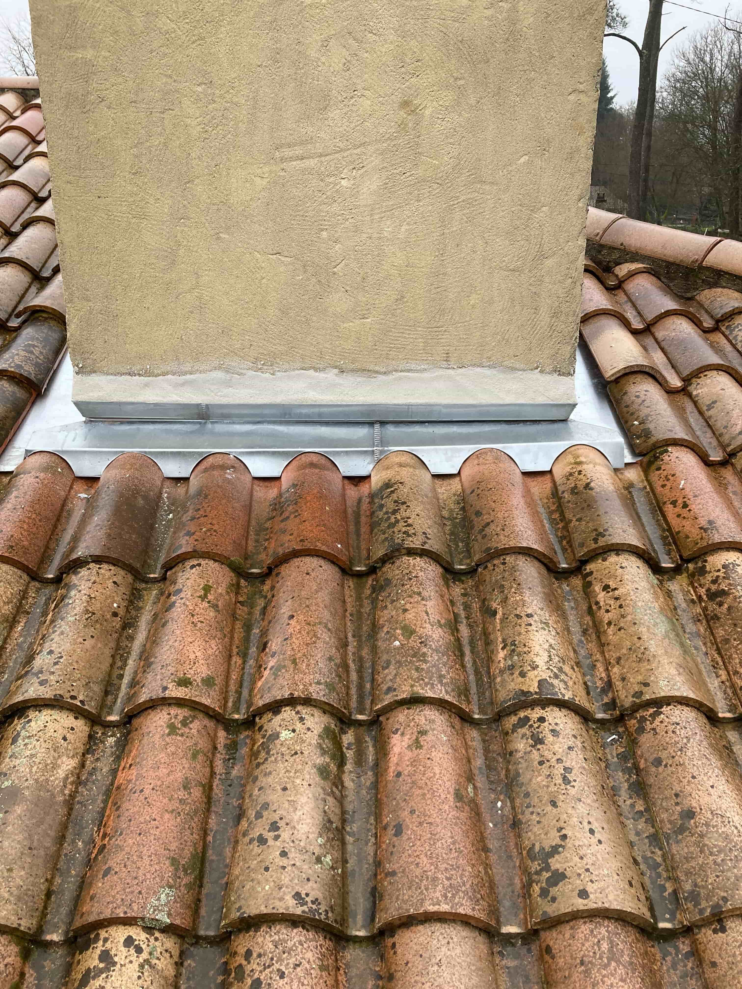 Nos équipes ont été appelées à Pessac pour un chantier de rénovation sur une toiture en tuiles. L’entourage de cheminée en place était très usé et présentait des fissures visibles, ce qui compromettait l’étanchéité globale du toit.